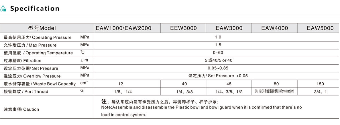 1.Compact size,light weight,good performance,easy use, charming appearance. 2.It adopts the modular connection,it may be used individually or by combination with easy installation.The embedded pressure gauge shortens the mounting time. 3.Manual drain,semi-auto drain (water discharged automatically while air turning off) and fully auto drain for your selection.