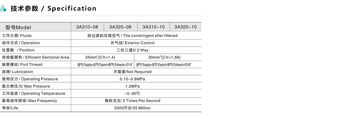 3A3 系列二位三通氣控閥