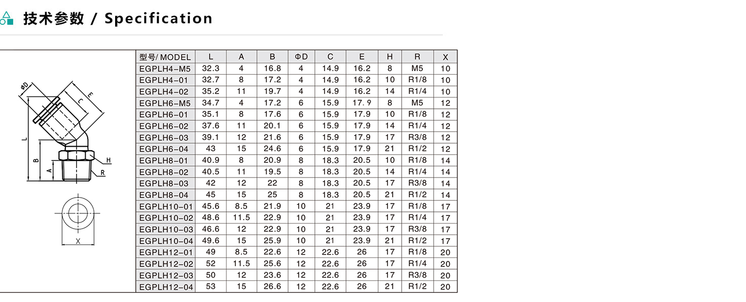 EGPLH/AGPLH 45°型螺紋二通