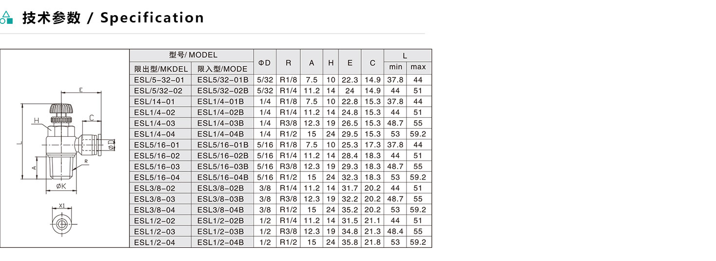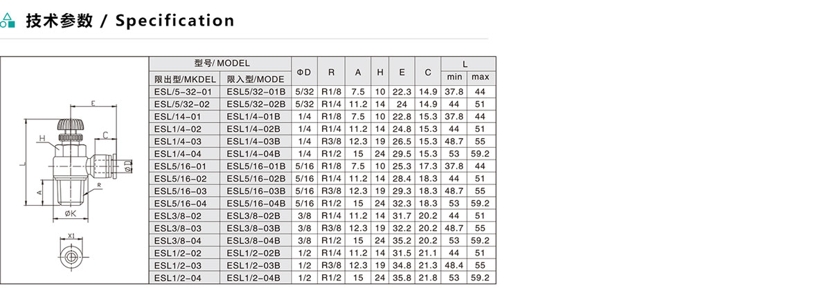 ESL/ASL 英制直接安裝L型節流閥