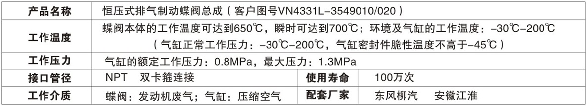 恒壓式排氣制動蝶閥總成(VN4331L-3549010/020)