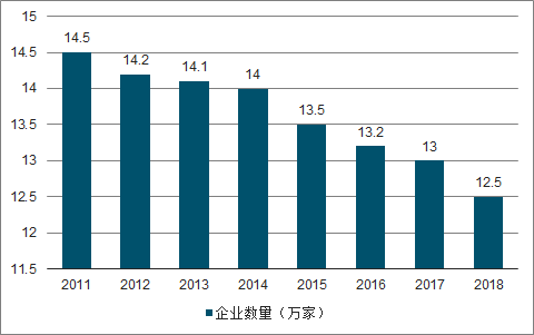 2011-2018年建筑裝飾企業數量趨勢