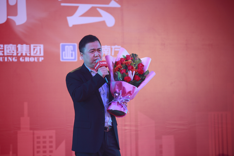隨后,寶鷹集團董事副總裁古樸致祝酒詞。古樸副總裁在致辭中從自己切身參與的項目建設入手,切實地向各位參會嘉賓講述了作為工程建設企業(yè)供應商的難處,并由衷地對各位供應商致以深厚的謝意。古樸副總裁還說:今天各位在朦朦冬雨中相聚,為友誼而來,更應該盡興而去,且請諸位共同舉杯,讓友誼長青。